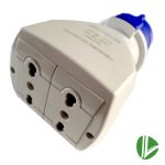 - Convierte una conexión industrial de 16A en dos conexiones domésticas de 10-16A.